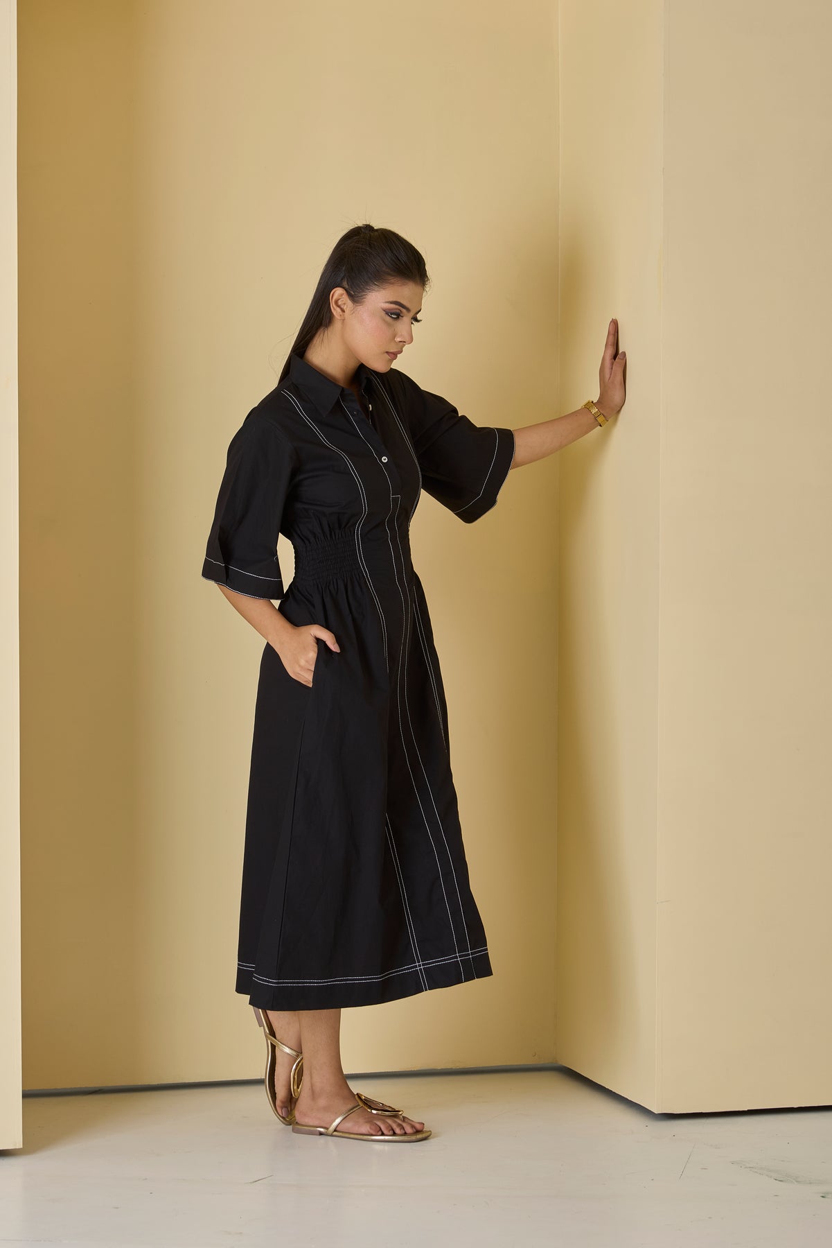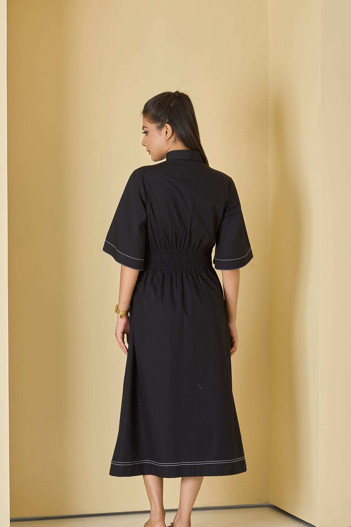 Available in various sizes, the Inka top stitch midi dress caters to different body types, ensuring a perfect fit for everyone. If you're looking for a dress that combines practicality and modern flair, this is the right choice for you.