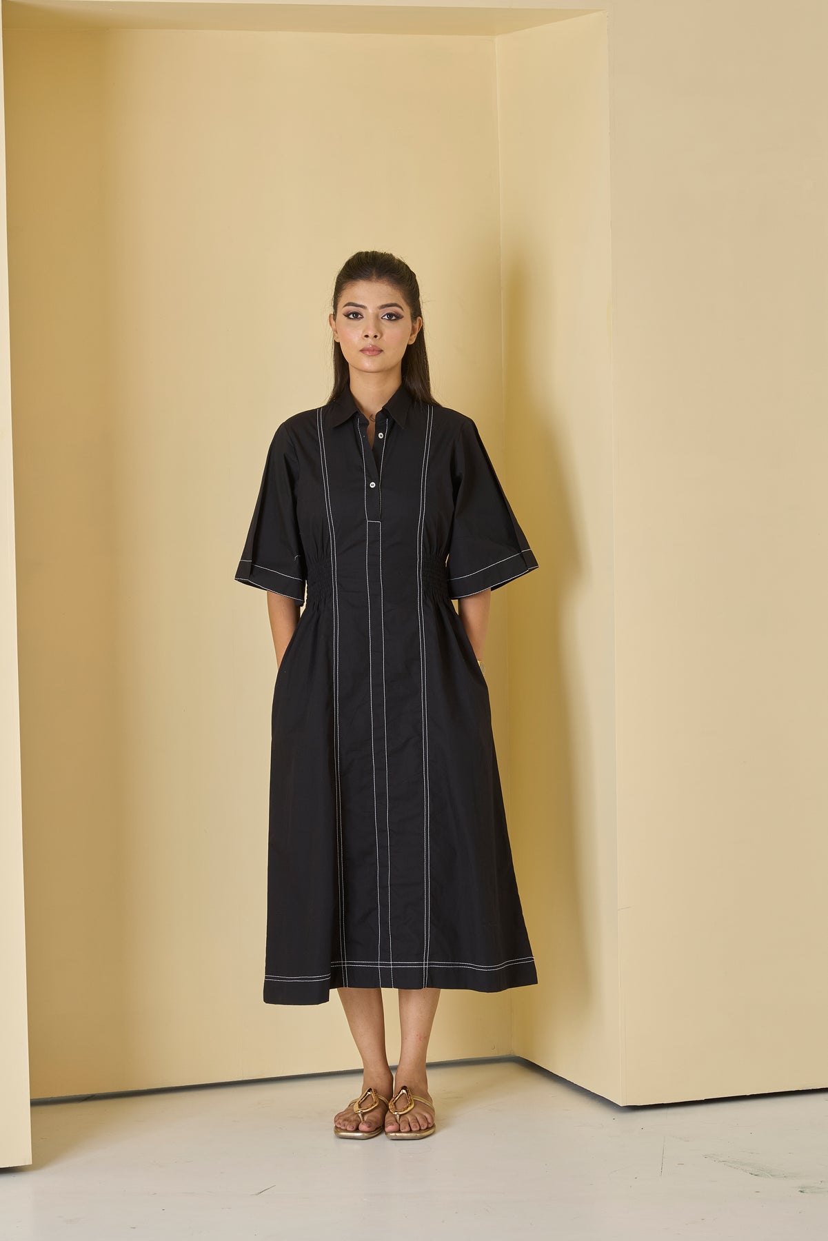 Crafted from high-quality fabric, the Inka top stitch midi dress offers a soft, breathable feel. Its spacious pockets bring practicality into style, allowing you to carry essentials effortlessly. The versatile design can be paired with sandals for a laid-back look or dressed up with heels for a more polished appearance.