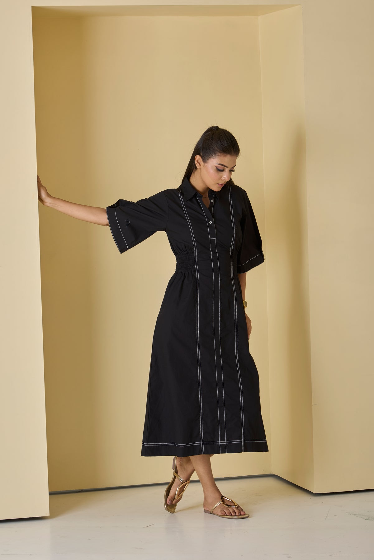 Embrace the bold, contemporary edge of western wear with the Inka top stitch midi dress. Shop now at Risate and elevate your fashion game with our unique collection today.