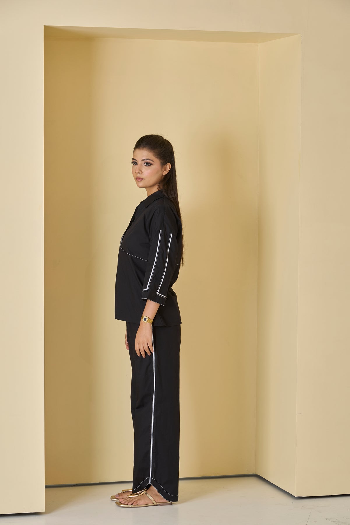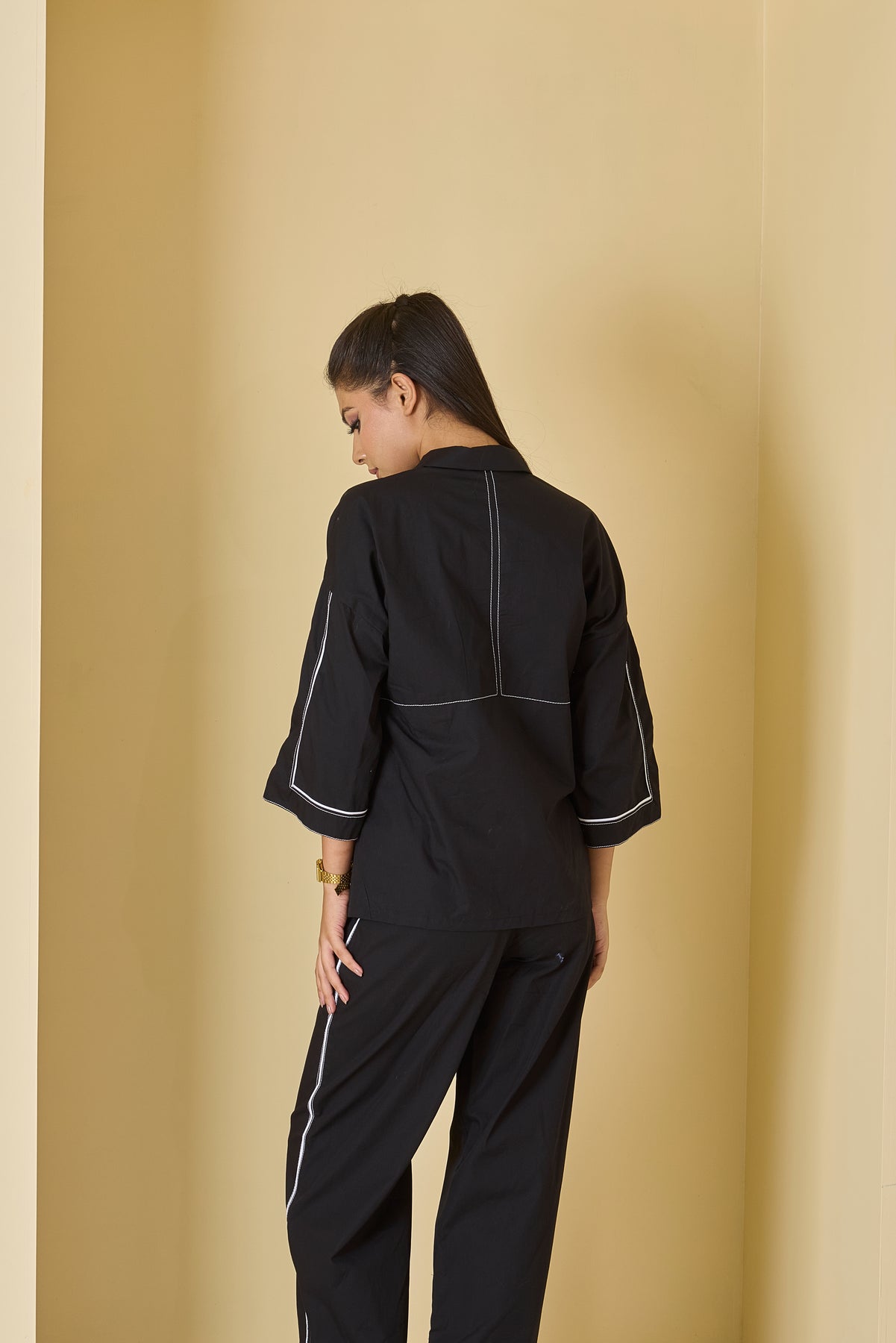 Versatile and modern, the women's black piped western set can be mixed and matched with other items in your wardrobe. Dress it down with sandals for a laid-back look, or elevate your outfit with heels for a more sophisticated vibe.