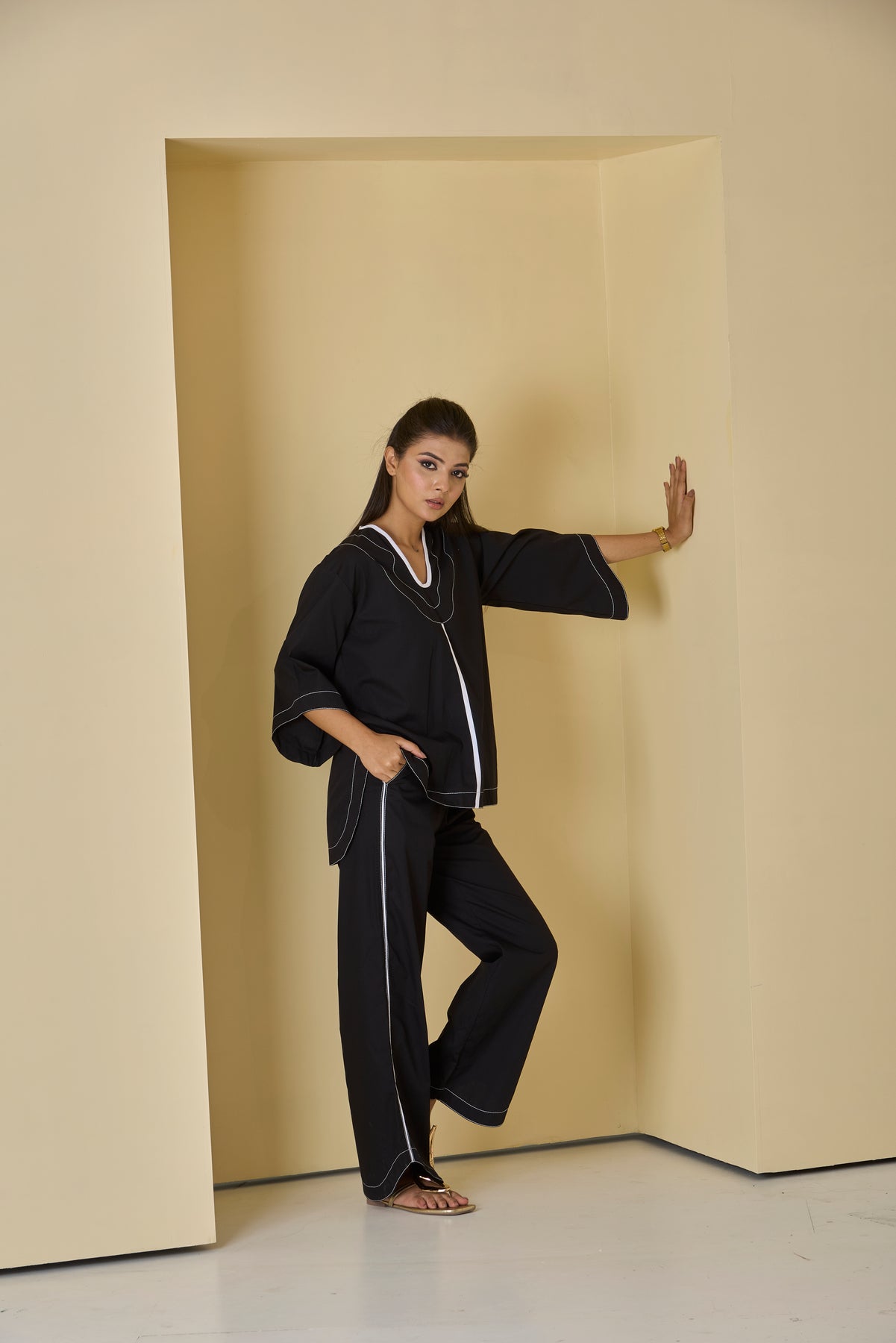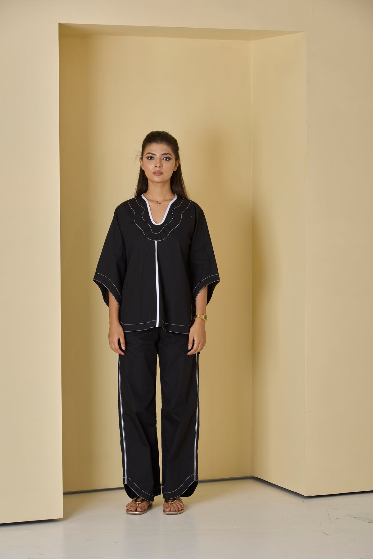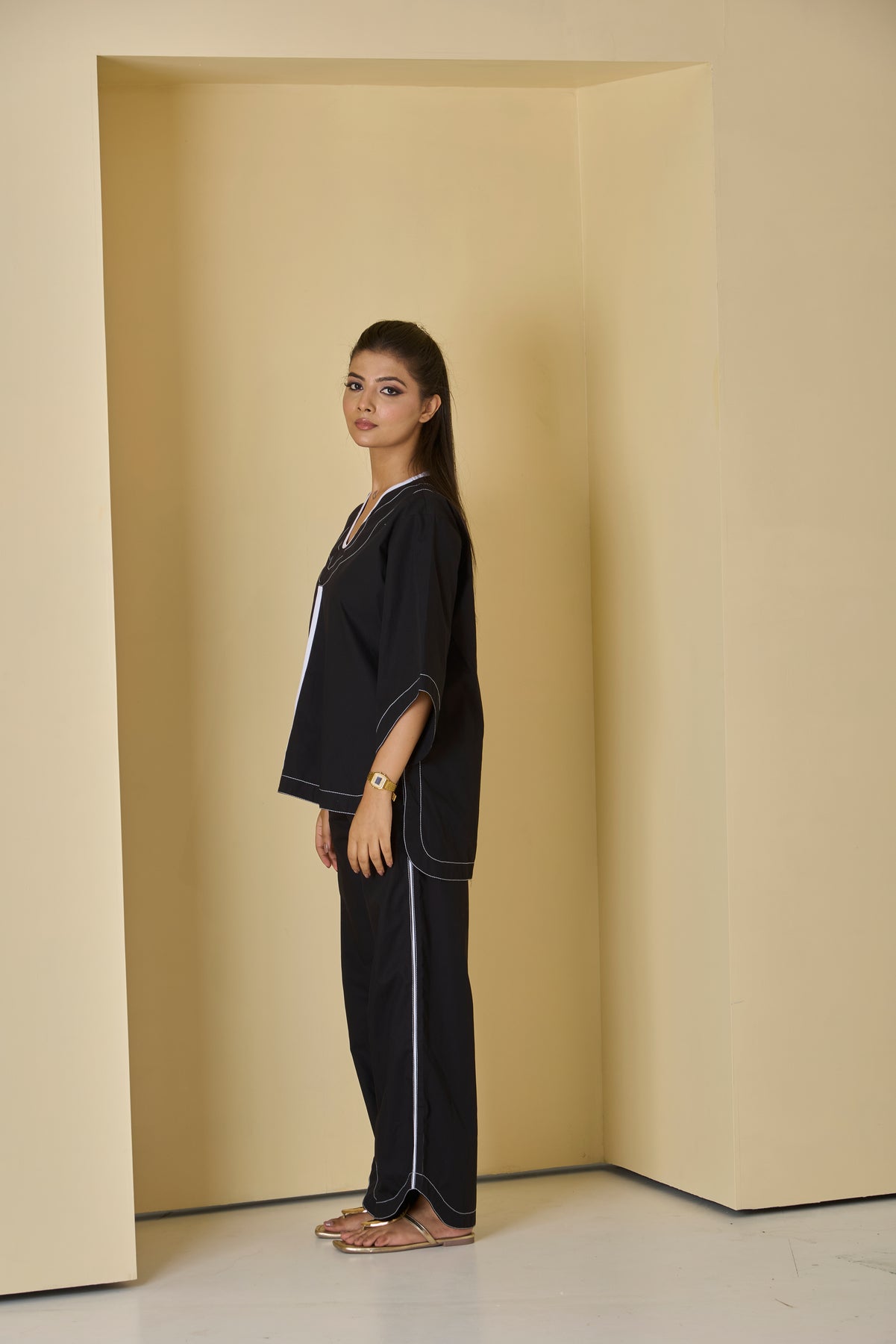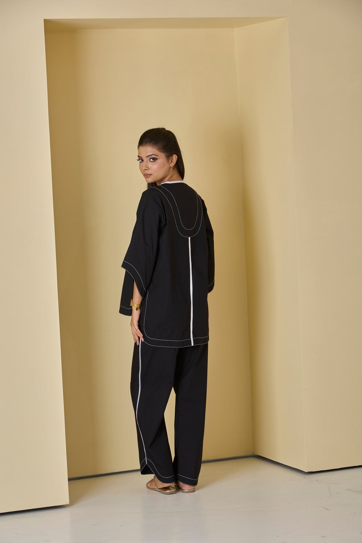 The women's western co ord set features a stylish top with intricate stitch detailing that adds a touch of sophistication. The loose fit allows for easy movement, making it perfect for casual outings or even evening events. Pair it with your favorite accessories for a chic look that stands out.