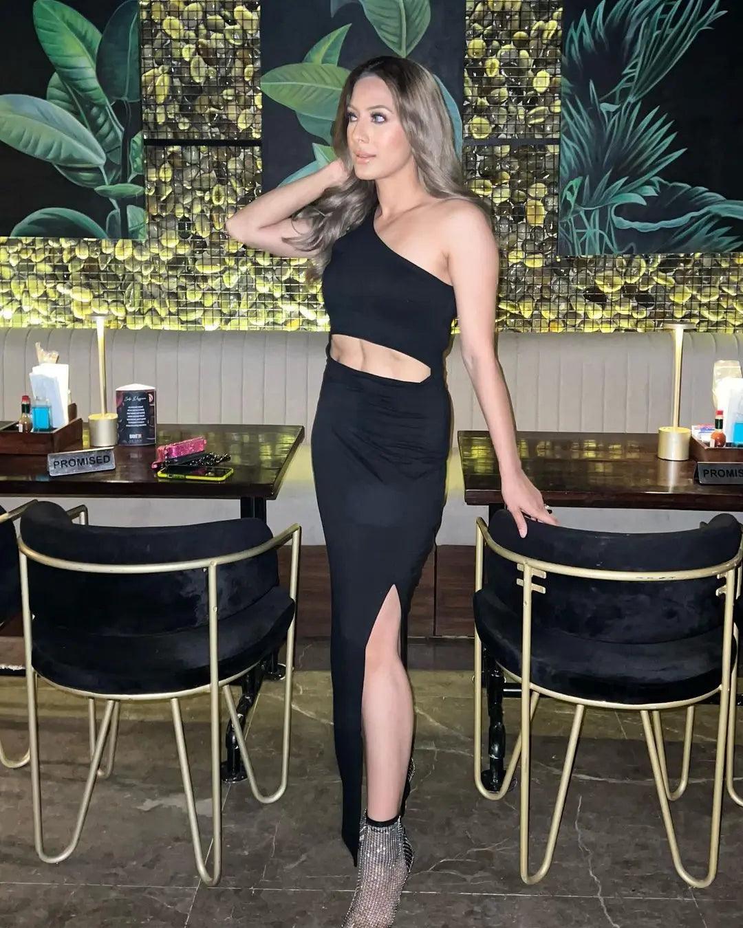 The Irene Dress is the perfect choice for any fashion-forward woman. This stunning one shoulder black dress for women combines elegance and contemporary style seamlessly. The unique one-shoulder design showcases a chic cutout midsection that accentuates the waist and offers a touch of allure.